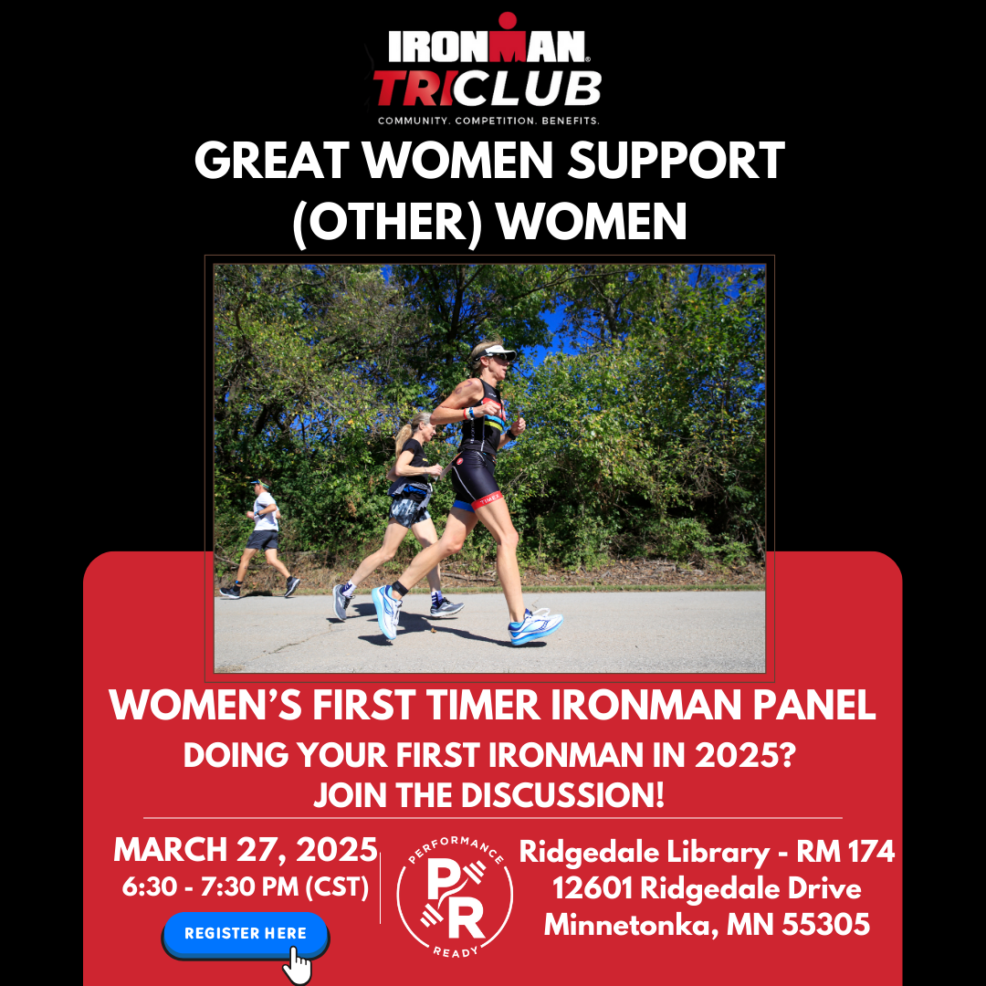 Performance Ready and IRONMAN Tri Club host an engaging Q&A session designed for women preparing for their first IRONMAN. Open to all experience levels, this event offers expert insights, training advice, and a supportive community to help you reach the finish line.​